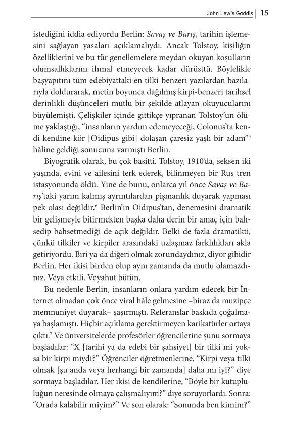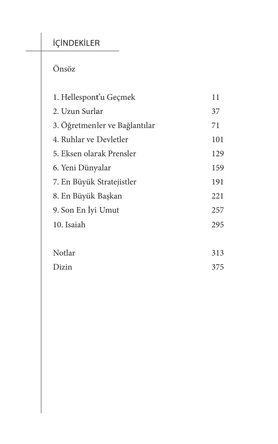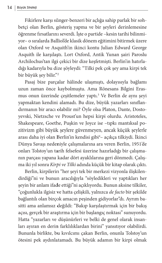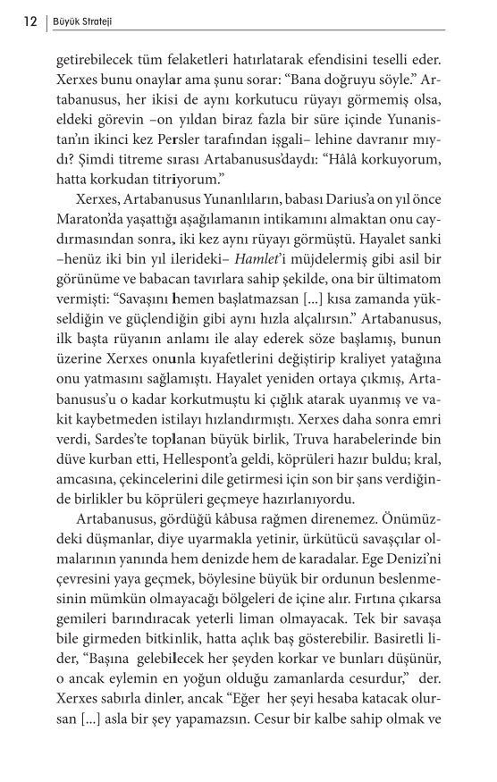 Seçkin tarihçi ve Soğuk Savaş’ın beğenilen yazarı John Lewis Gaddis, yaklaşık yirmi yıldır meslektaşları Charles Hill ve Paul Kennedy ile Yale Üniversitesi’nde “Büyük Strateji Üzerine İncelemeler” dersi vermektedir. Gaddis, dersleri boyunca elde ettiği tecrübe ve verimli tartışmaların sağladığı yetkinliğiyle birlikte bu kitapta Antik Yunan’dan İkinci Dünya Savaşı’na uzanan şahane bir içgörüyü açığa çıkarıyor. Herodotus, Thukydides, Sun Tzu, Octavian/Augustus, Aziz Augustinus, Machiavelli, I. Elizabeth, II. Philip, Clausewitz, Tolstoy, Lincoln, Wilson, Franklin D. Roosevelt ve Isaiah Berlin gibi önemli figürlerin büyük stratejik derinliğini teori ve pratik olarak kapsamlı bir şekilde ele alıyor. “Geçtiğimiz on altı yıl boyunca Gaddis, Yale Üniversitesi’ndeki öğrencilere büyük strateji üzerine bir ders verdi. Onun kitabını okurken, ‘Keşke her üniversitede böyle bir şans olsa’ demeden edemiyorsunuz. Gaddis, devlet yönetimi ve savaştan değerli bir yaşam sürmeye kadar birçok konuda tavsiyeler vererek okuru yüzyıllar üzerinde enfes bir yolculuğa çıkarıyor.” —Phillip Delves Broughton, Evening Standard “Zor zamanlarımız için bir eğitim kılavuzu. Dünyamıza anlam katmanın yanında, çok güzel işlenmiş özlü tarihsel yargıları da sunuyor. Özgürlüğe, seçime ve ahlak pusulasına önem veren, kibre karşı uyarıda bulunan bir kitap.” —Roger Boyes, Times