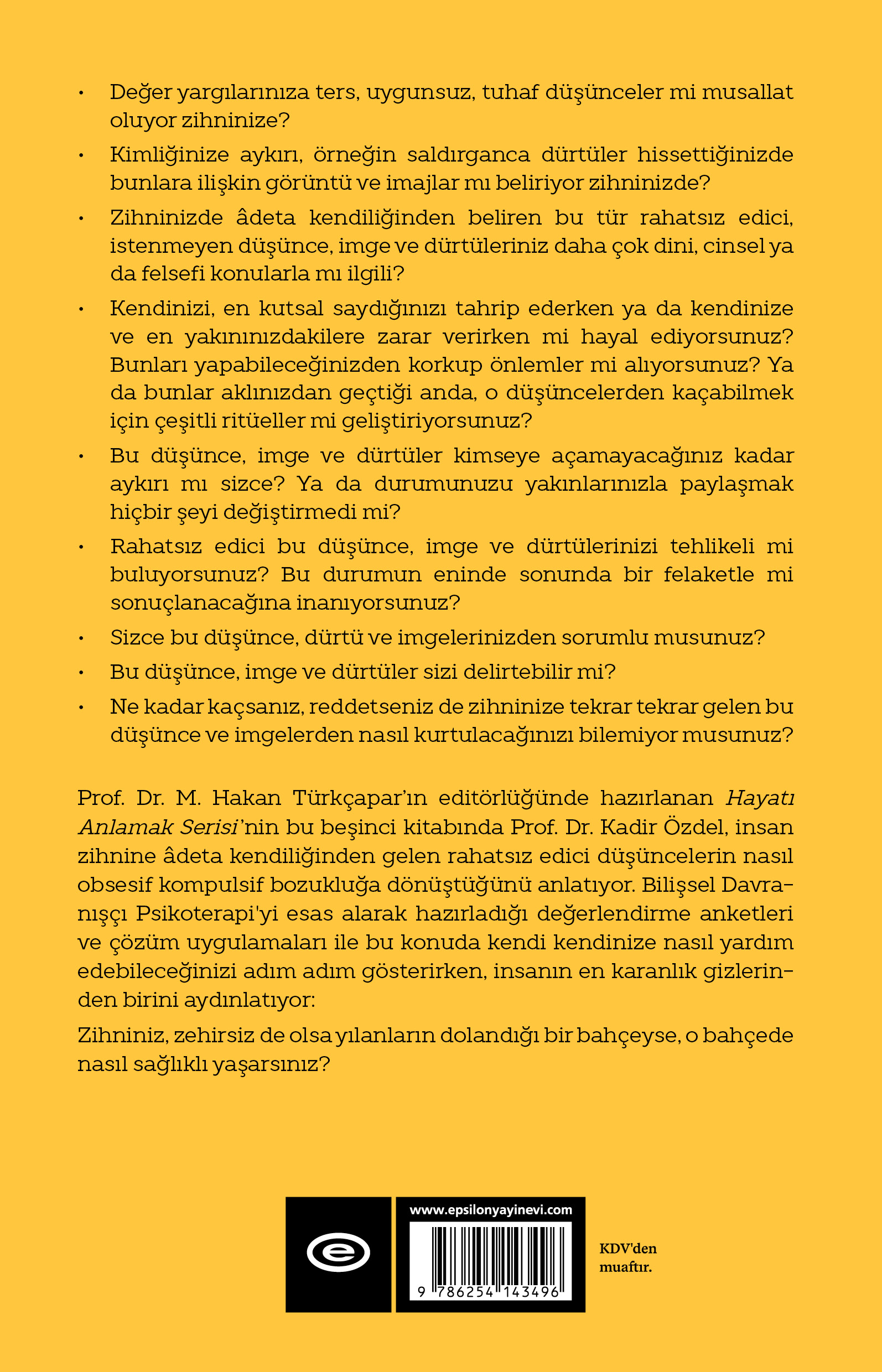 obsesif kompulsif bozukluğa dönüştüğünü anlatıyor. Bilişsel Davranışçı Psikoterapi'yi esas alarak hazırladığı değerlendirme anketleri