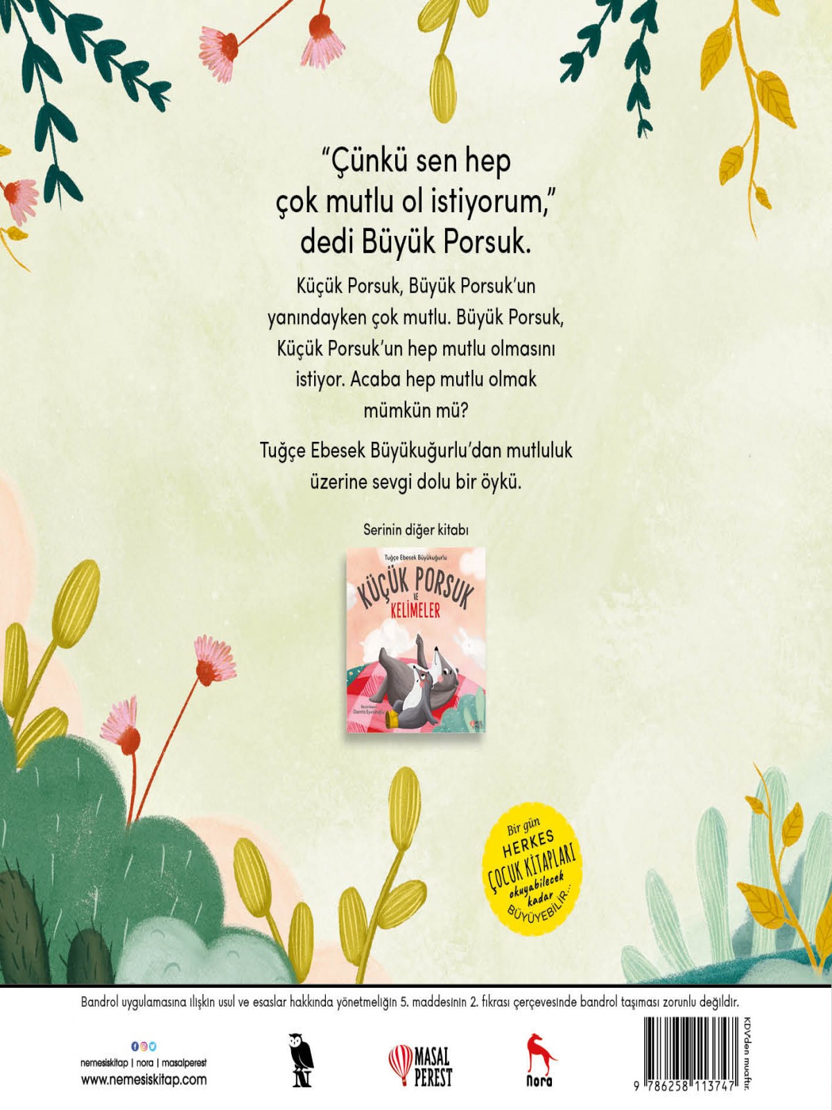 Küçük Porsuk, Büyük Porsuk’un yanındayken çok mutlu. Büyük Porsuk, Küçük Porsuk’un hep mutlu olmasını istiyor. Acaba hep mutlu olmak mümkün mü?