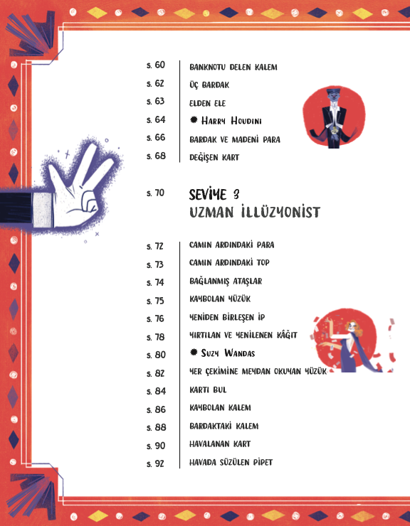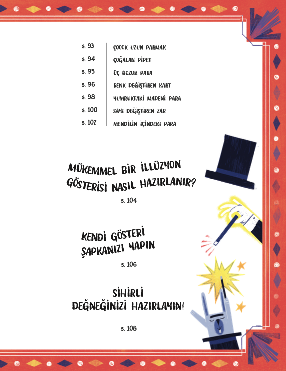 İllüzyon dünyasının birbirinden eğlenceli numaralarını keşfetmeye hazır mısınız? Bu kitapta sizi 50’den fazla şaşırtıcı illüzyon numarası bekliyor! Üstelik hepsini, evde kolayca bulabileceğiniz eşyalarla yapabilirsiniz. Her aşaması adım adım çizimlerle anlatılan numaralar sayesinde, kendinizi gerçek birer illüzyonist gibi hissedeceksiniz! Tüm bunların yanı sıra, illüzyon dünyasının efsane isimlerini tanıyacak, onların sırlarını öğrenerek kendi renkli yolculuğunuza çıkacaksınız!