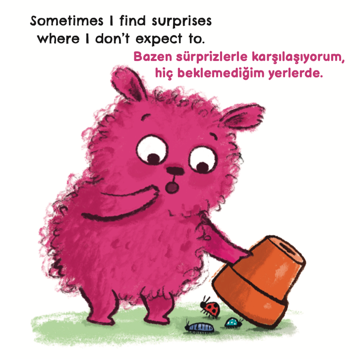 Toplumsal kalıplardan bağımsız yaratılan karakterlerle hazırlanan kitap, şaşırmanın yalnızca korku ya da endişe değil; aynı zamanda eğlence, merak ve neşeyle de ilişkili olabileceğini küçük yaştaki çocuklara öğretiyor.
