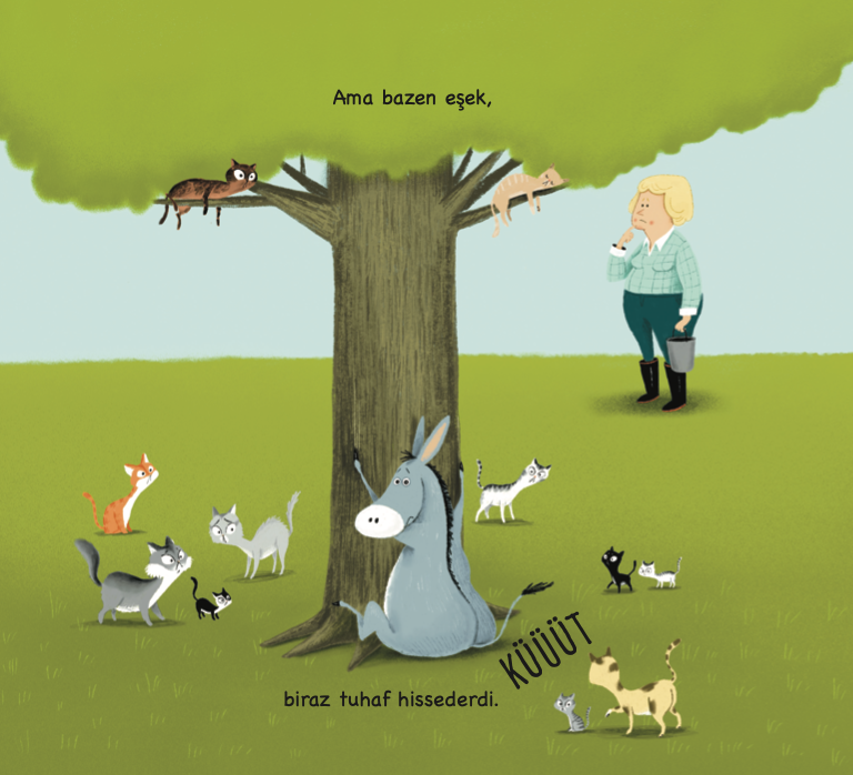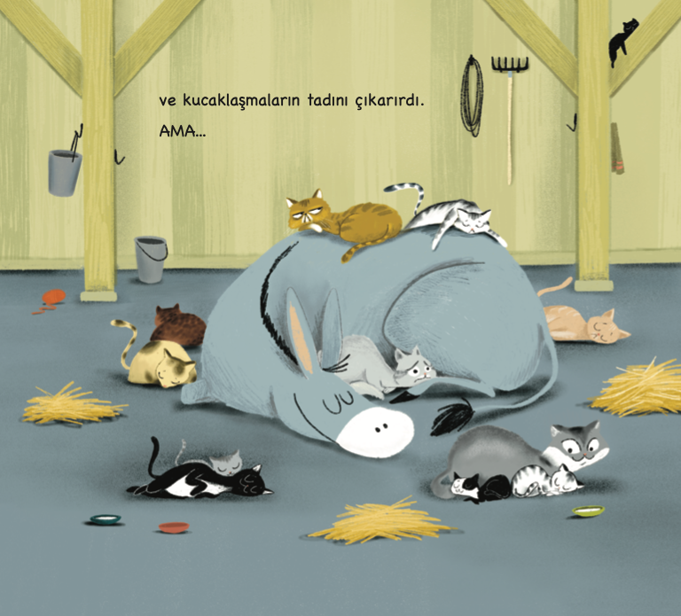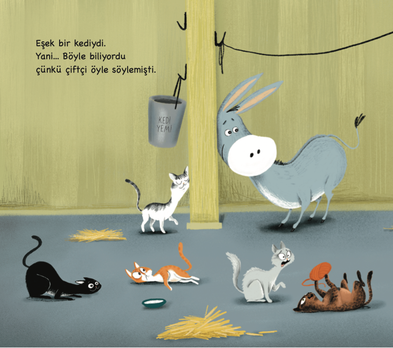 Kedilerle dolu bir ahırda yaşayan ve kendini “gerçekten” kedi sanan bir eşek…