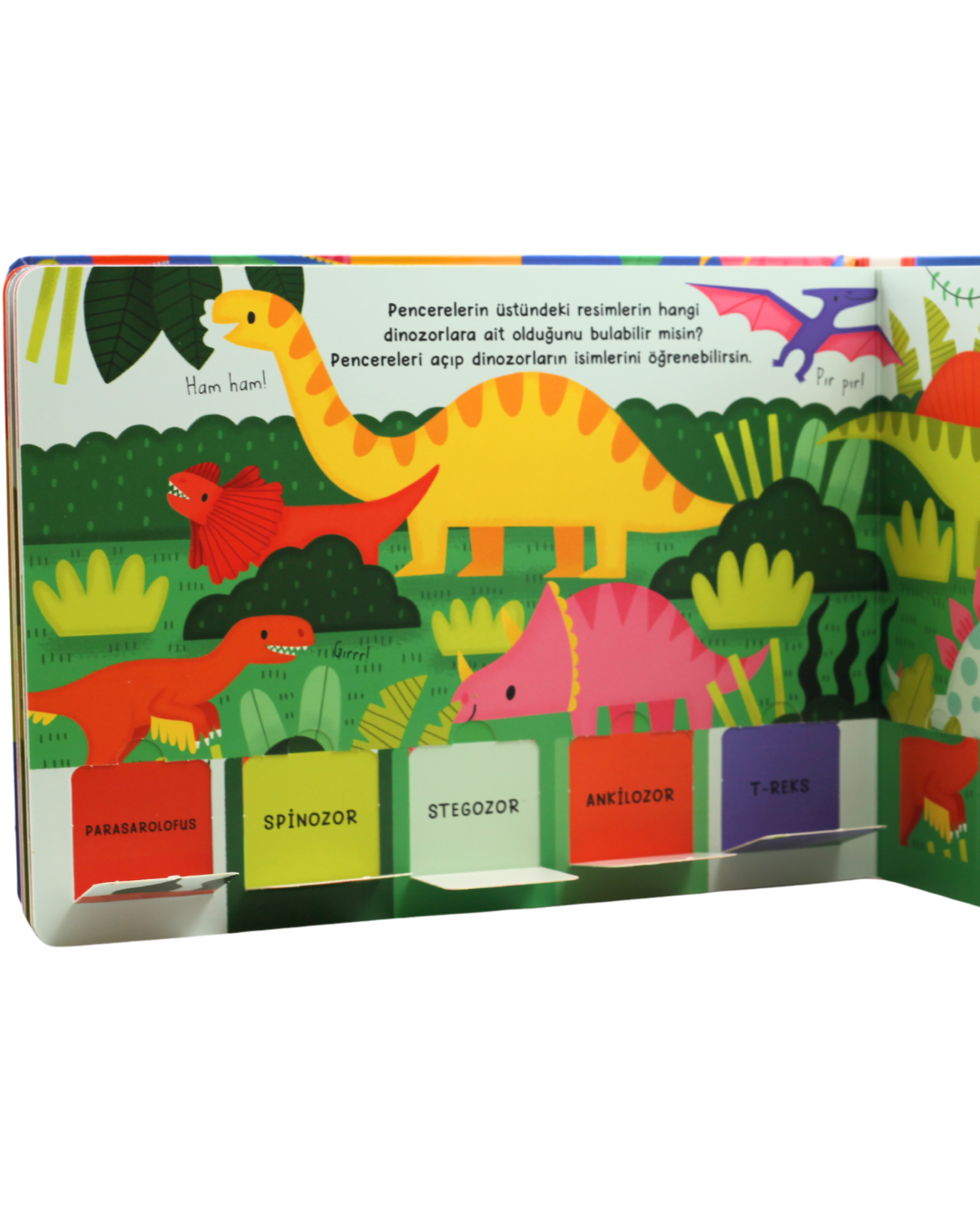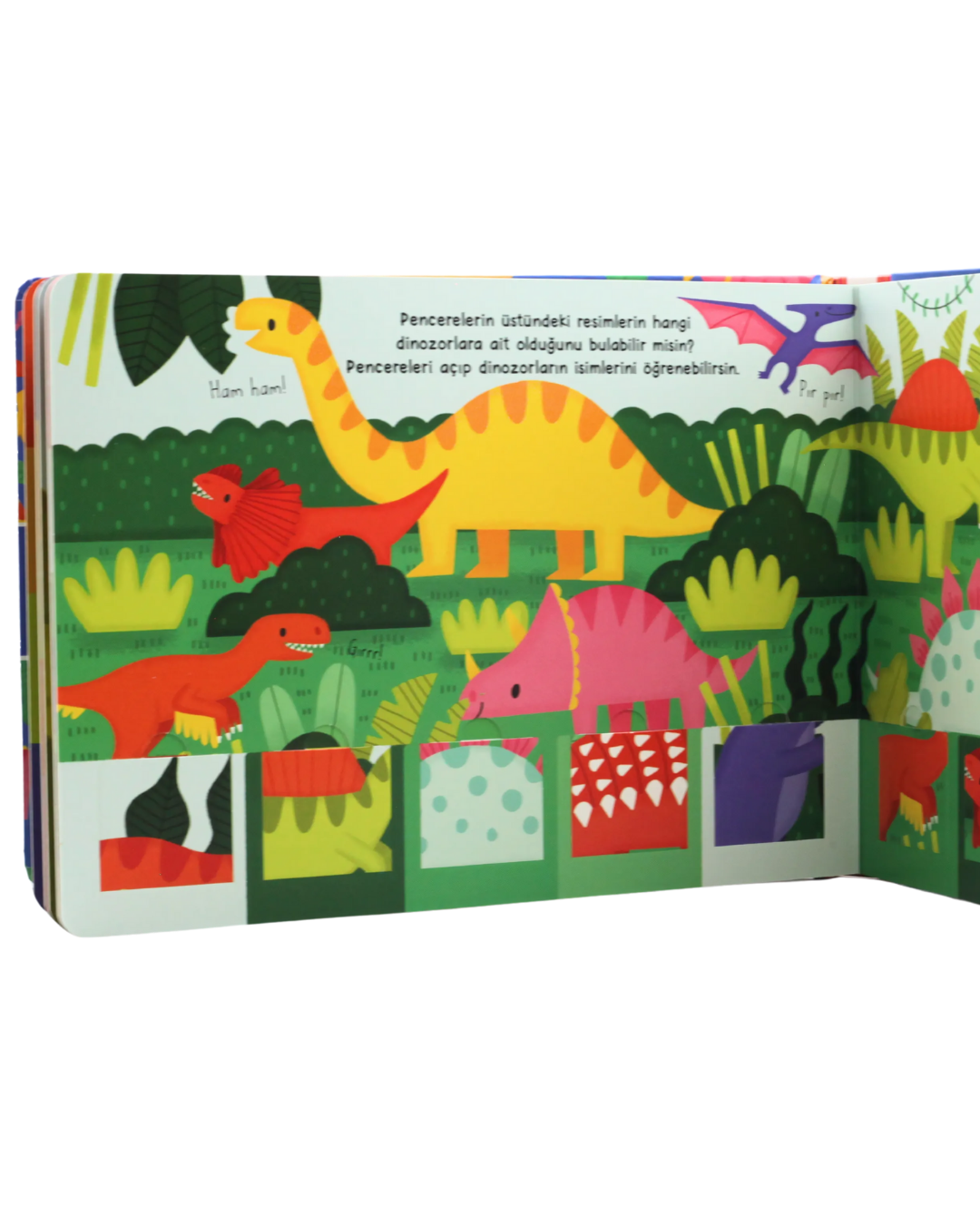 Meraklı minikler bu kitapla milyonlarca yıl öncesine yolculuk yapıyor! Pencereleri kaldırıp çılgın dinozorları tanırken hem eğlenecek hem de öğrenmenin keyfine varacaklar.