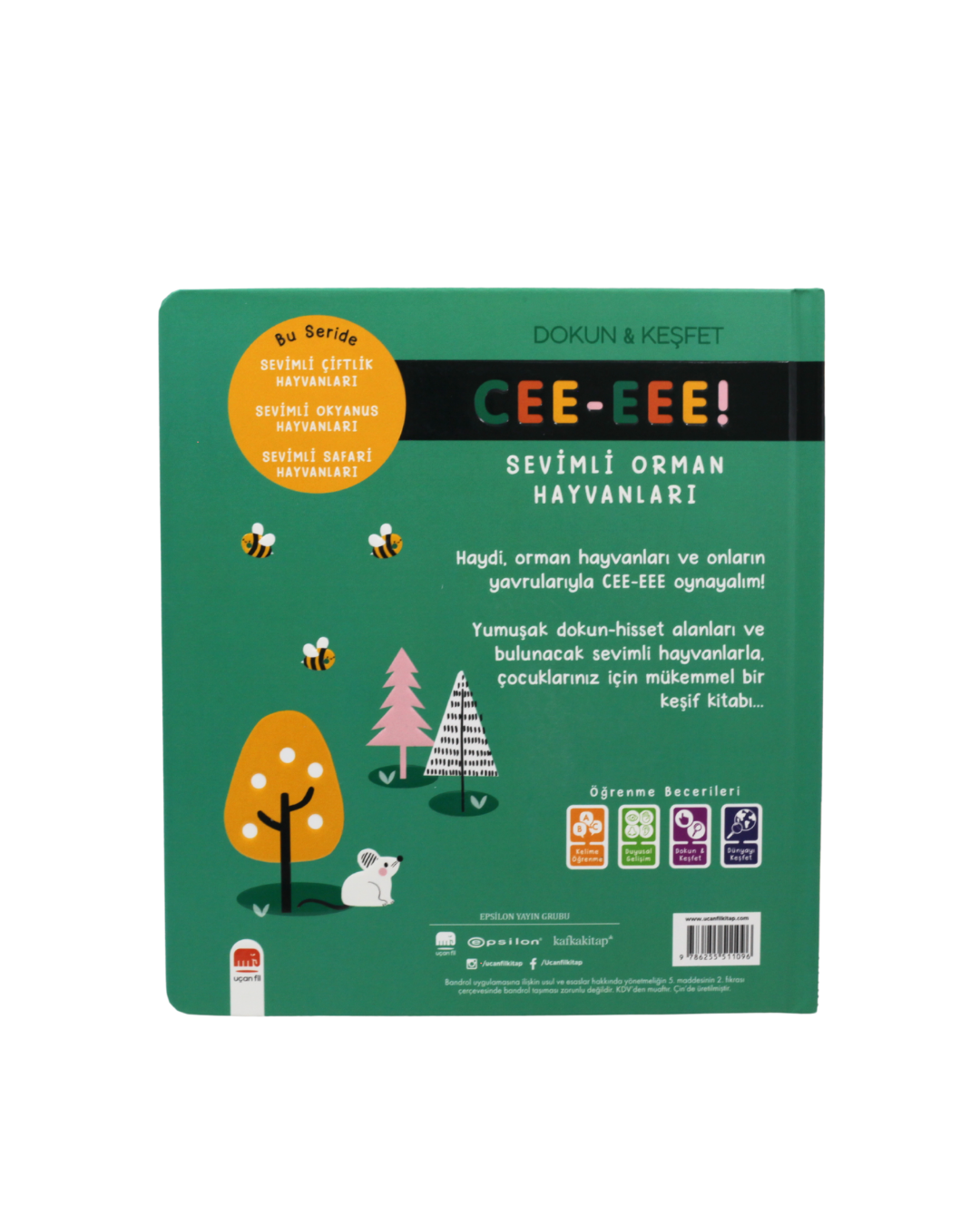 Haydi, orman hayvanları ve onların yavrularıyla CEE-EEE oynayalım! Kapakçıkları aç, yumuşak dokun-hisset alanlarını keşfet ve sürpriz orman dostlarını bul. Çocuklar hem eğlenecek hem de yeni kelimeler öğrenerek dünyayı keşfetmenin keyfine varacak.