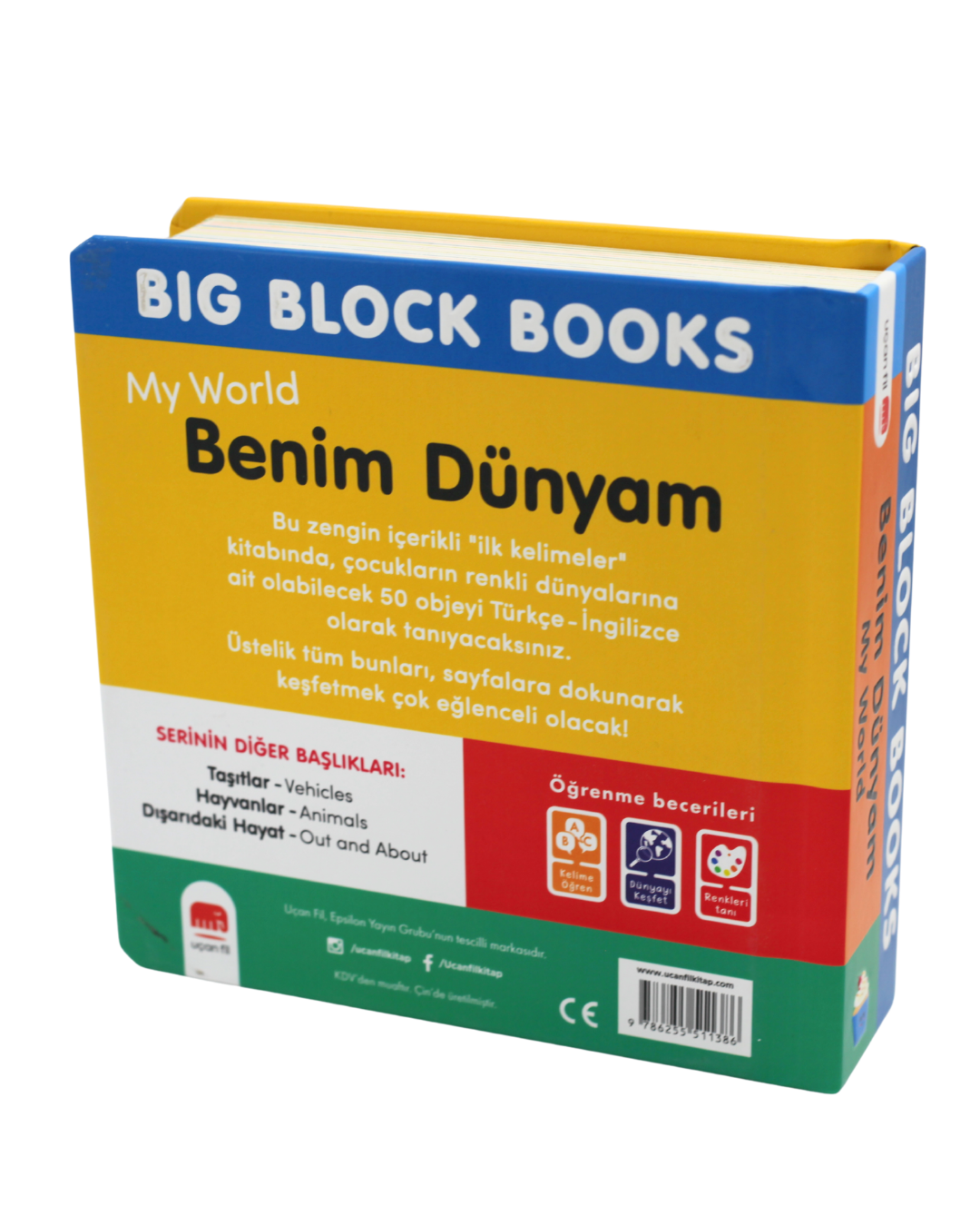 Benim Dünyam, çocukların en yakından bildikleri günlük yaşam kavramlarını eğlenceli bir şekilde sunuyor. Yemek masasından oyuncaklara, odasından kıyafetlerine kadar pek çok tanıdık objeyi Türkçe ve İngilizce olarak keşfeden minikler, kendi dünyalarını kitap sayfalarında buluyor.