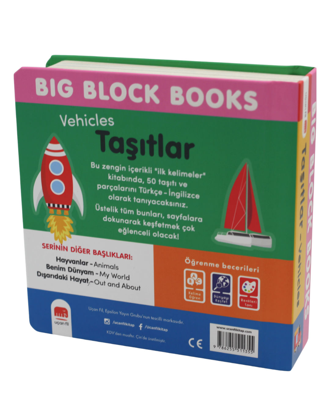 Taşıtlar kitabı, çocukları hareketli bir yolculuğa çıkarıyor! Uçak, tren, otobüs, araba ve bisiklet gibi gündelik hayatta karşılarına çıkan ya da merak ettikleri 50 farklı taşıtı Türkçe ve İngilizce olarak öğreniyorlar. Her sayfa, miniklere yeni bir keşif ve öğrenme heyecanı sunuyor.