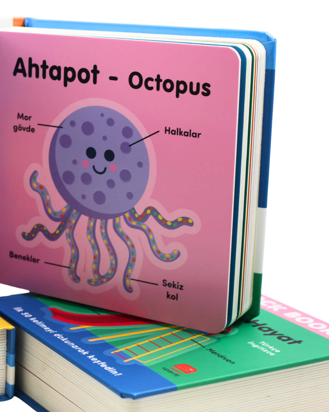 Canlı renkler ve net çizimlerle hazırlanan sayfalar, öğrenmeyi keyifli hale getirirken dokunarak keşfetmeyi de teşvik ediyor. Dil gelişimini destekleyen bu kitap, miniklerin hayal gücünü zenginleştiriyor ve kitap sevgisini pekiştiriyor.