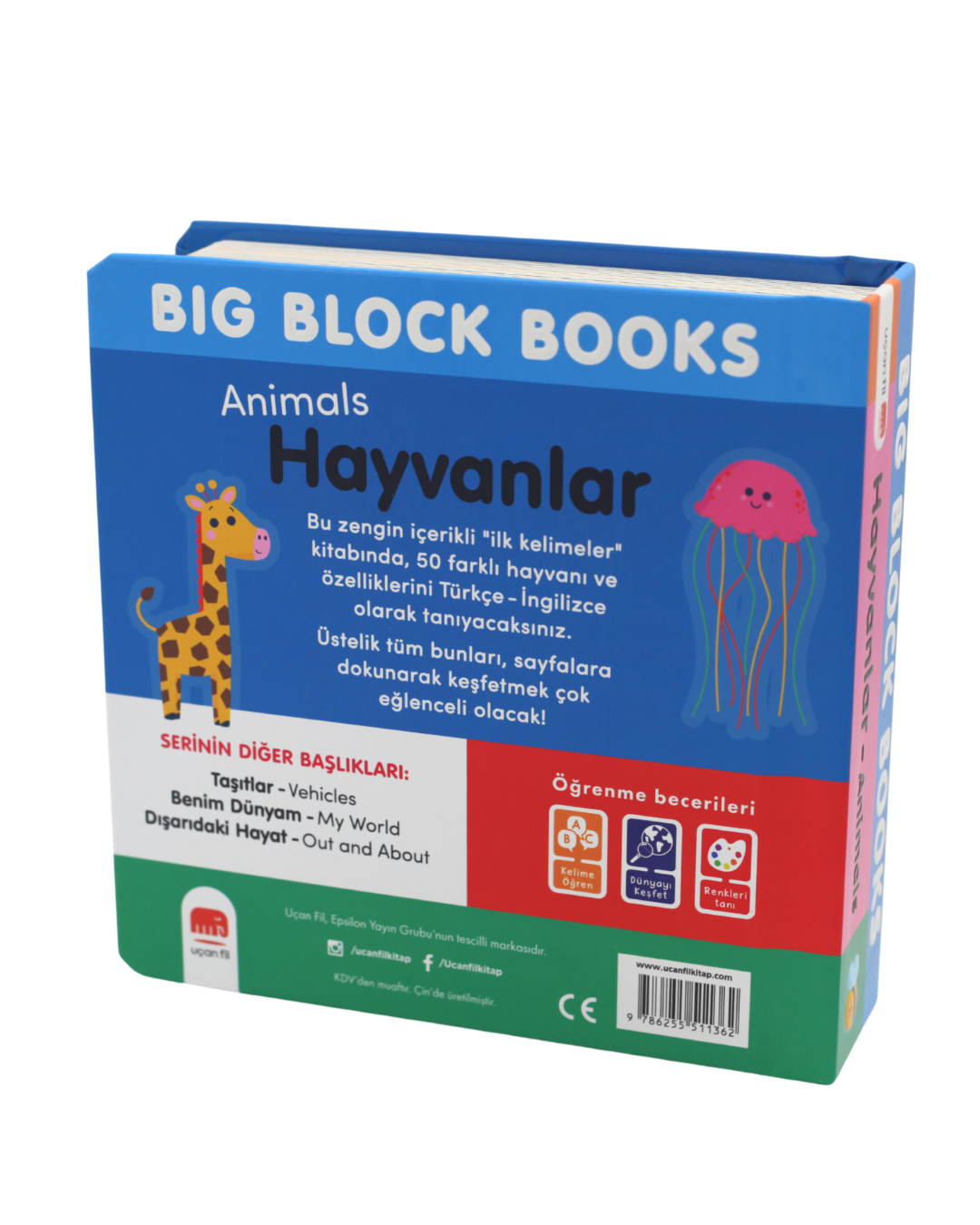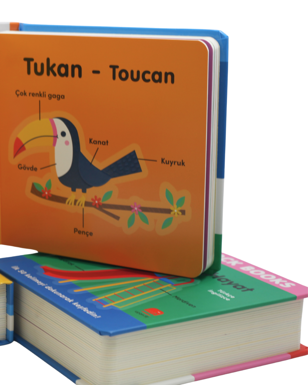 Hayvanlar kitabı, çocukları sevimli ve merak uyandırıcı bir yolculuğa çıkarıyor. Evcil hayvanlardan çiftlik hayvanlarına, vahşi doğadan su altı canlılarına kadar 50 farklı hayvanı Türkçe ve İngilizce olarak öğrenen minikler, kitap sayesinde çevrelerindeki canlıları daha yakından tanıyor.