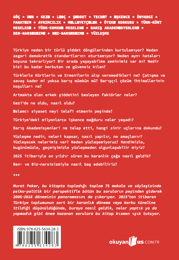 Klinik psikolog, psikanalist ve siyaset bilimci Murat Paker, Türkiye Debelenirken’de 2005–2018 yılları arasında kaleme aldığı yazılarla bu soruya psiko-politik bir yanıt arıyor. Toplumun bilinçdışına sinmiş travmaları, bastırılmış yüzleşmeleri ve tekrar eden çatışma kalıplarını cesur bir dille ortaya koyuyor.