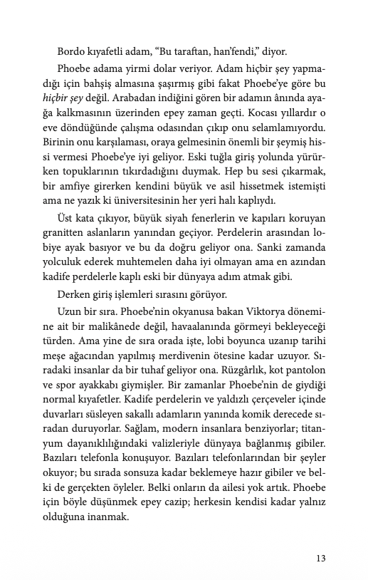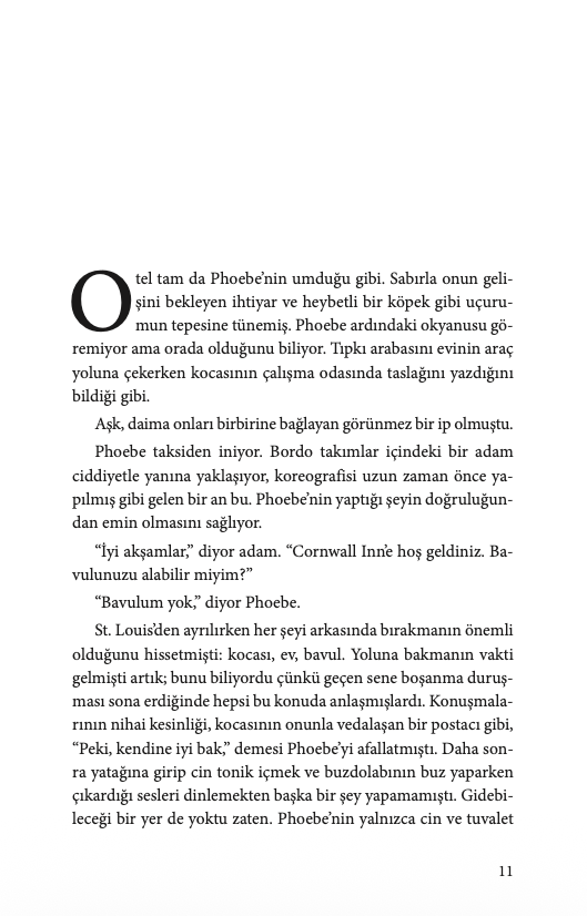Phoebe Stone, zümrüt yeşili bir elbise ve yaldızlı, topuklu ayakkabılarla, görünürde bir çantası ya da bavulu olmadan Cornwall Inn'e tek başına gelir. Lobideki herkes onun düğün konuklarından biri olduğunu düşünür; ancak Phoebe, büyük düğüne katılmayan tek misafirdir. Phoebe, yıllardır buraya gelmeyi hayal etmiştir; kocasıyla güzel yemekler yemeyi, günbatımında okyanusa açılmayı ummuştur. Şimdi ise onsuz, dibe vurmuş ve kendine son bir lüks harcama yapmaya kararlı bir şekilde buradadır.