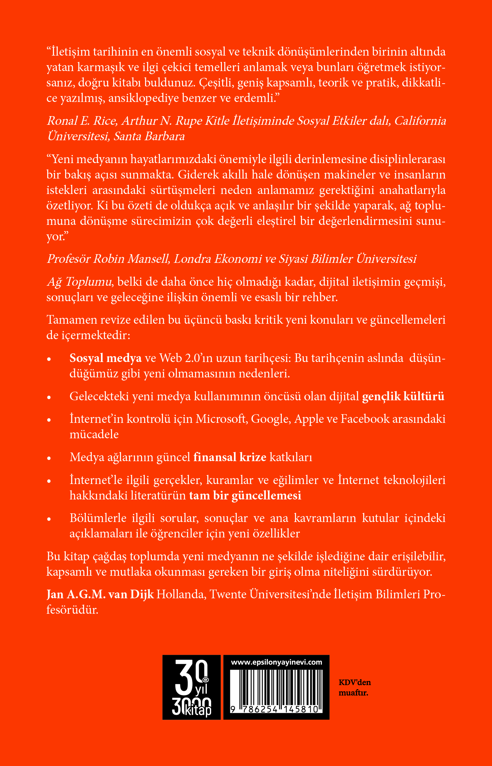 Ağ Toplumu, belki de daha önce hiç olmadığı kadar, dijital iletişimin geçmişi, sonuçları ve geleceğine ilişkin önemli ve esaslı bir rehber.
