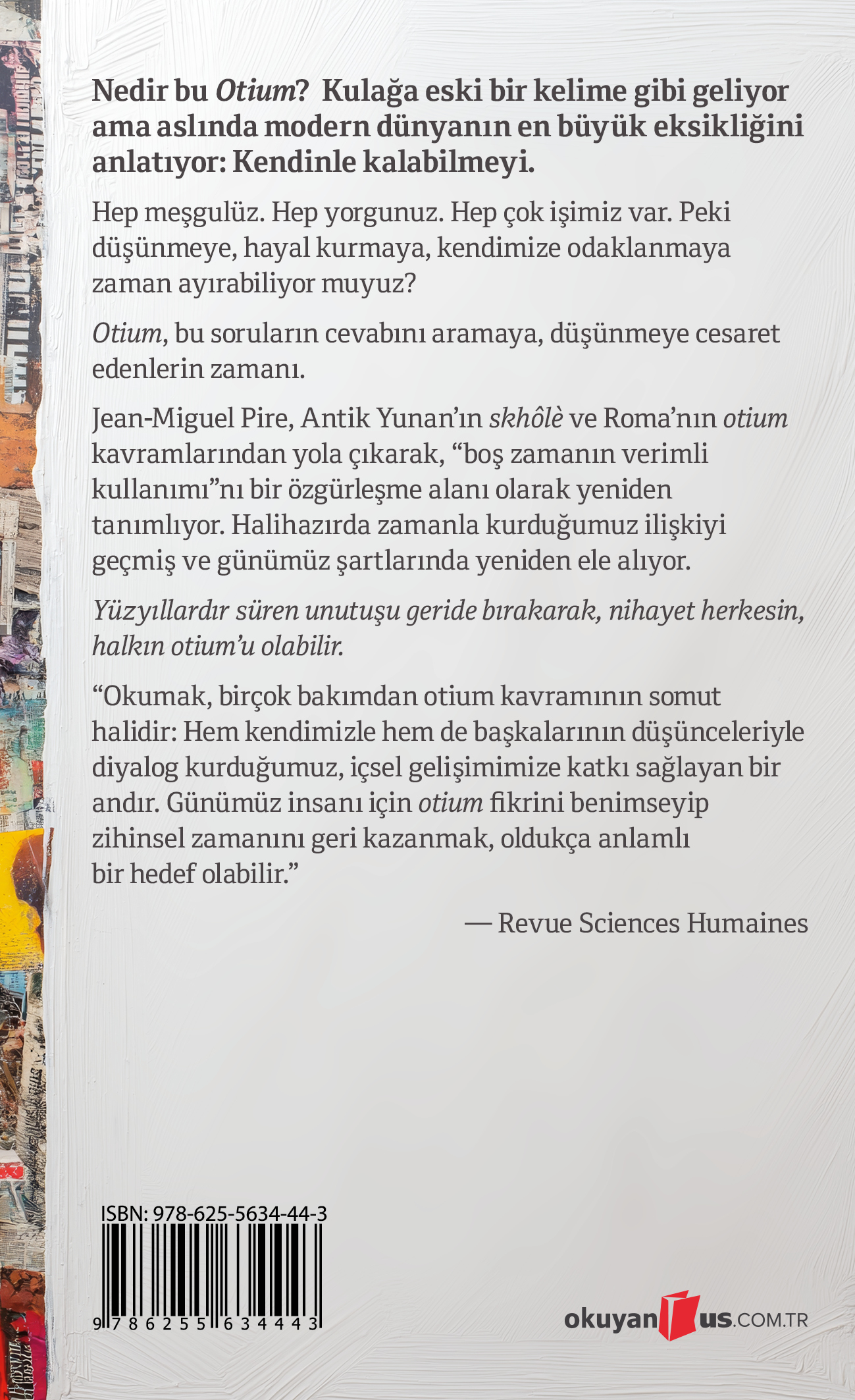 “Okumak, birçok bakımdan otium kavramının somut halidir: Hem kendimizle hem de başkalarının düşünceleriyle diyalog kurduğumuz, içsel gelişimimize katkı sağlayan bir andır. Günümüz insanı için otium fikrini benimseyip zihinsel zamanını geri kazanmak, oldukça anlamlı bir hedef olabilir.”