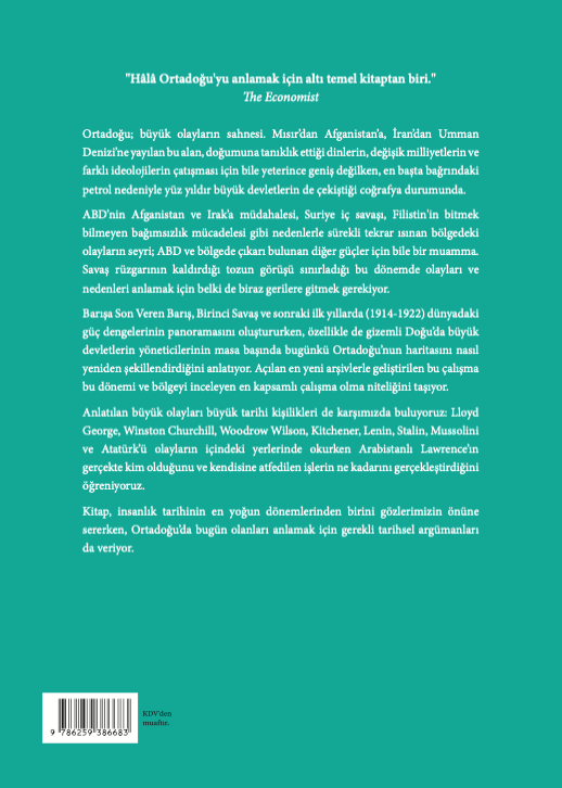 Barışa Son Veren Barış, Birinci Savaş ve sonraki ilk yıllarda (1914-1922) dünyadaki güç dengelerinin panoramasını oluştururken, özellikle de gizemli Doğu’da büyük devletlerin yöneticilerinin masa başında bugünkü Ortadoğu’nun haritasını nasıl yeniden şekillendirdiğini anlatıyor. Açılan en yeni arşivlerle geliştirilen bu çalışma bu dönemi ve bölgeyi inceleyen en kapsamlı çalışma olma niteliğini taşıyor.