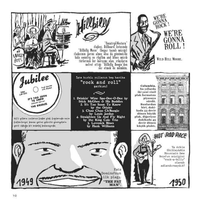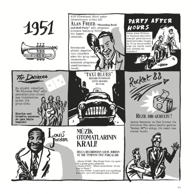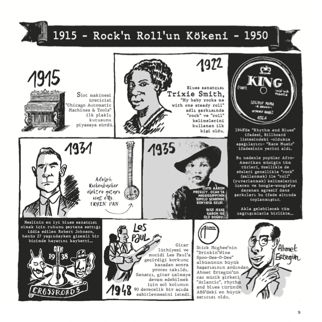 Bu türün tarihine benzersiz bir kişisel yorum katan, eğlenceli, yaratıcı ve sıkı bir müzik tutkununun şaheseri! Bourhis, 1950’lerden günümüze uzanan rock evrenini kendi çizimleri, listeleri, anekdotları ve mizahî yorumlarıyla âdeta bir hayran defterine dönüştürüyor; Elvis’ten Beatles’a, punk patlamasından indie sahnesine kadar rock kültürünü şekillendiren anları kendine özgü bir dille yeniden kuruyor. Bu küçük ama “amfi son ses” kitap, hem müzik meraklıları hem de rock’ın neşeli, kaotik ve efsanelerle dolu tarihine dalmak isteyenler için keyifli bir rehber. Bourhis’in samimi üslubu ve görsel yaklaşımı, rock’ı yalnızca bir müzik türü değil, kuşakları etkileyen bir yaşam biçimi olarak ele alıp bu koleksiyonluk çalışmayı yaratmışken söylenecek tek söz var: “Yaşasın Rock ‘n’ Roll!”
