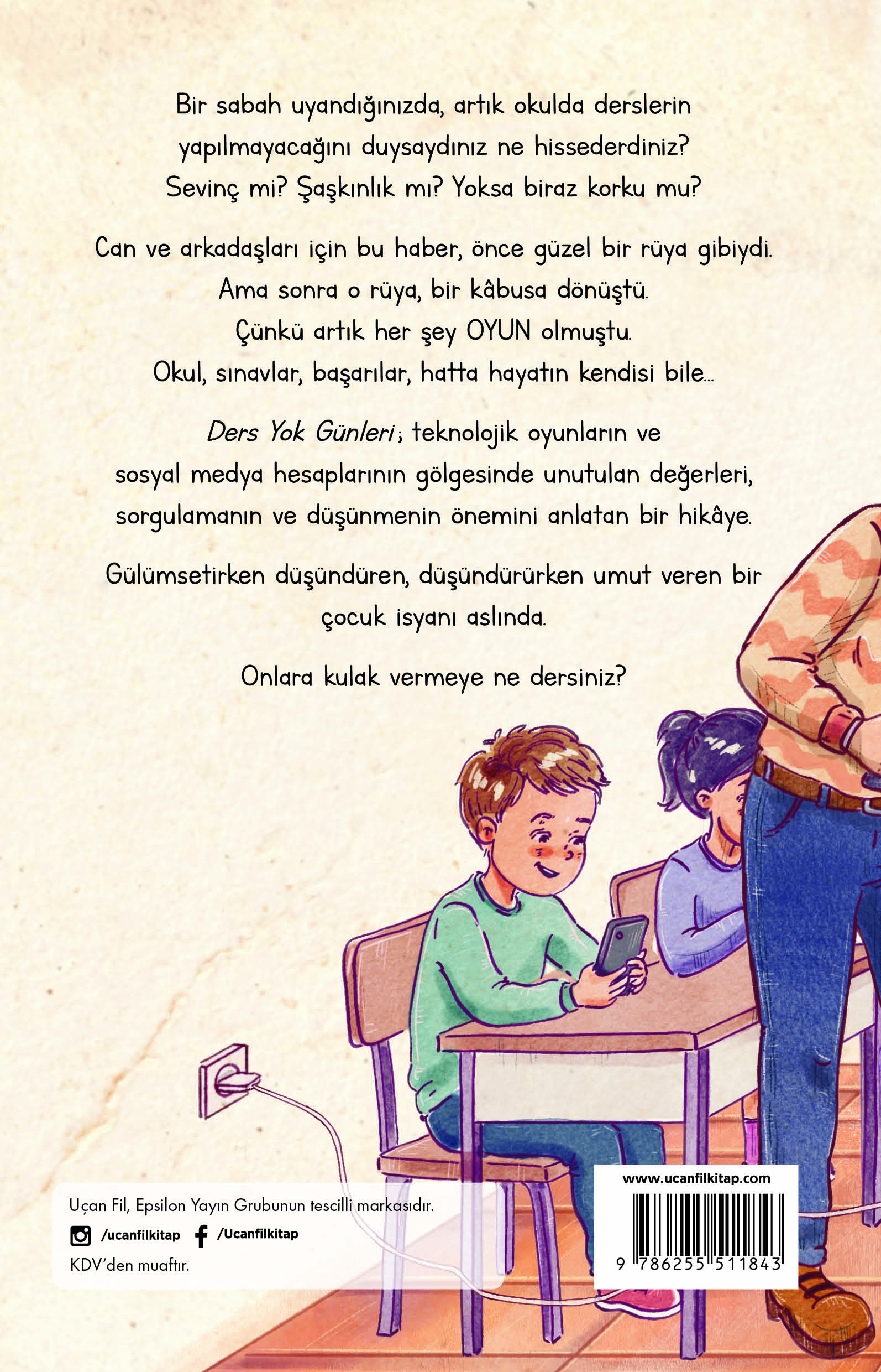 Ders Yok Günleri ; teknolojik oyunların ve sosyal medya hesaplarının gölgesinde unutulan değerleri, sorgulamanın ve düşünmenin önemini anlatan bir hikâye.