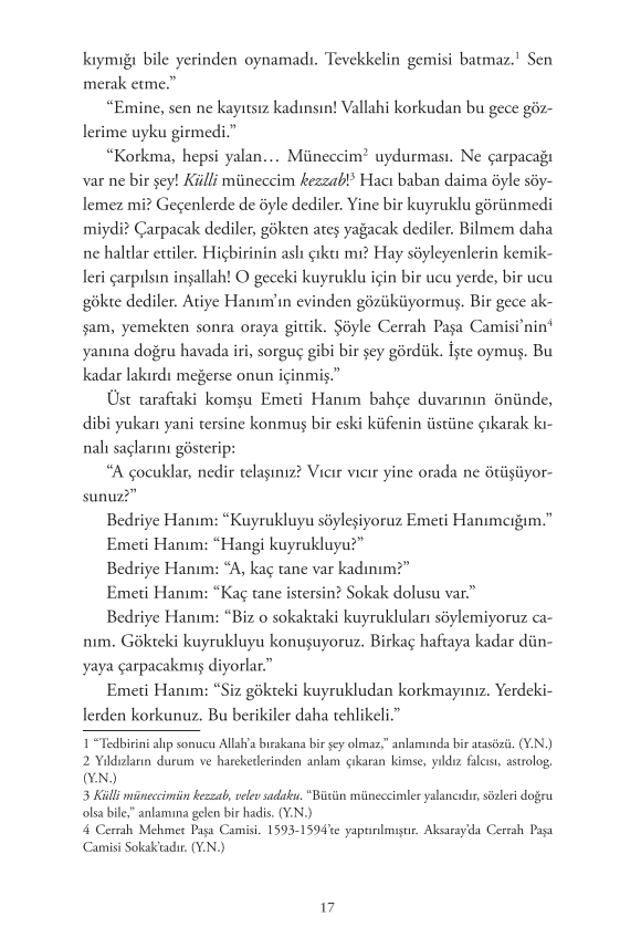 75 yılda bir atmosferimizin yakınından geçen Halley Kuyrukluyıldızı, 1910’da da beklenen ziyaretini yaptığında, tüm dünyada olduğu gibi İstanbul’da da bir panik başlar. Ya çarparsa? Sokakta da basında da tek gündem Halley’in dünyaya çarpıp çarpmayacağı olur. Durum böyle olunca gündelik hayatın yazarı Hüseyin Rahmi Gürpınar’a da gün doğar ve edebiyatımızın en çok okunan, en çok sevilen hikâyelerinden birini yazar.