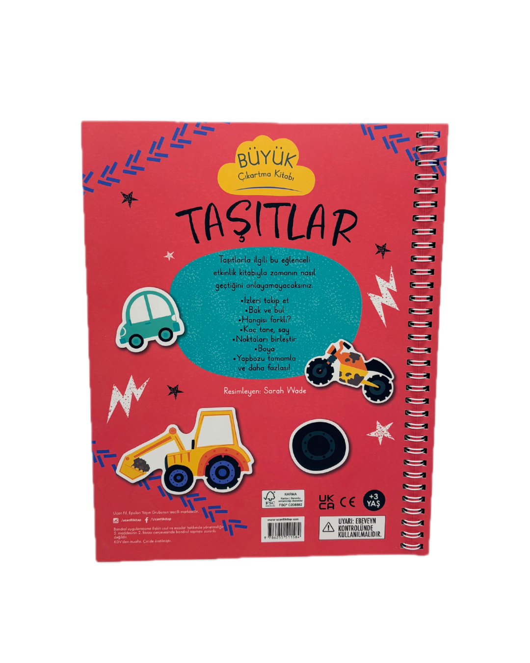 “Hayvanlar” ve “Taşıtlar” başlıklarından oluşan Büyük Çıkartma Kitapları, çocukları renkli ve etkileşimli bir keşif yolculuğuna davet ediyor. Her sayfası, öğrenmeyi eğlenceli hâle getiren etkinliklerle dolu bu kitaplar; çocukların dikkatini canlı tutarken merak duygularını da destekliyor.