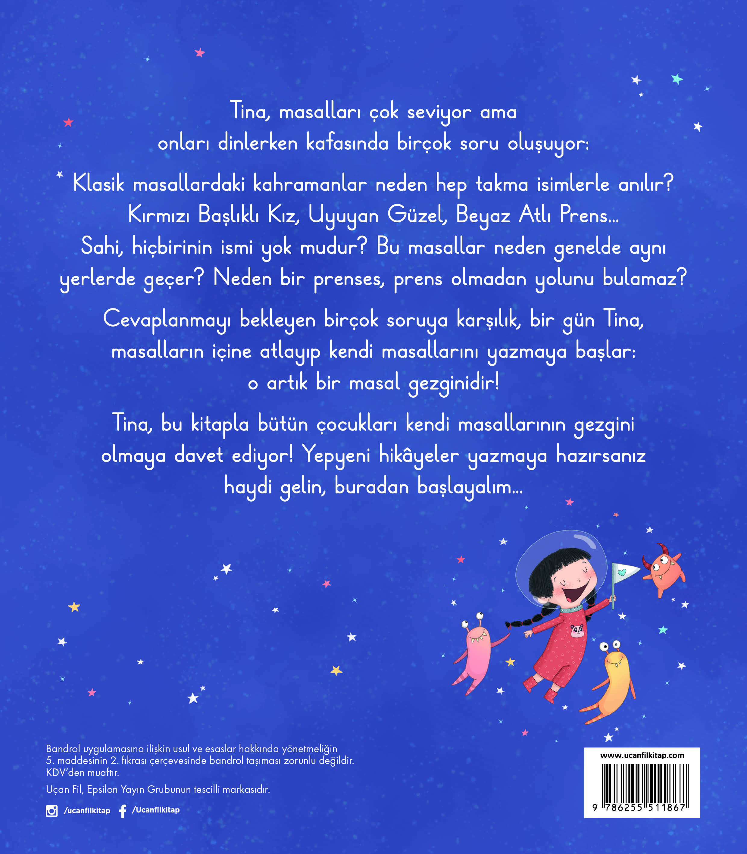 Tina, bu kitapla bütün çocukları kendi masallarının gezgini olmaya davet ediyor! Yepyeni hikâyeler yazmaya hazırsanız