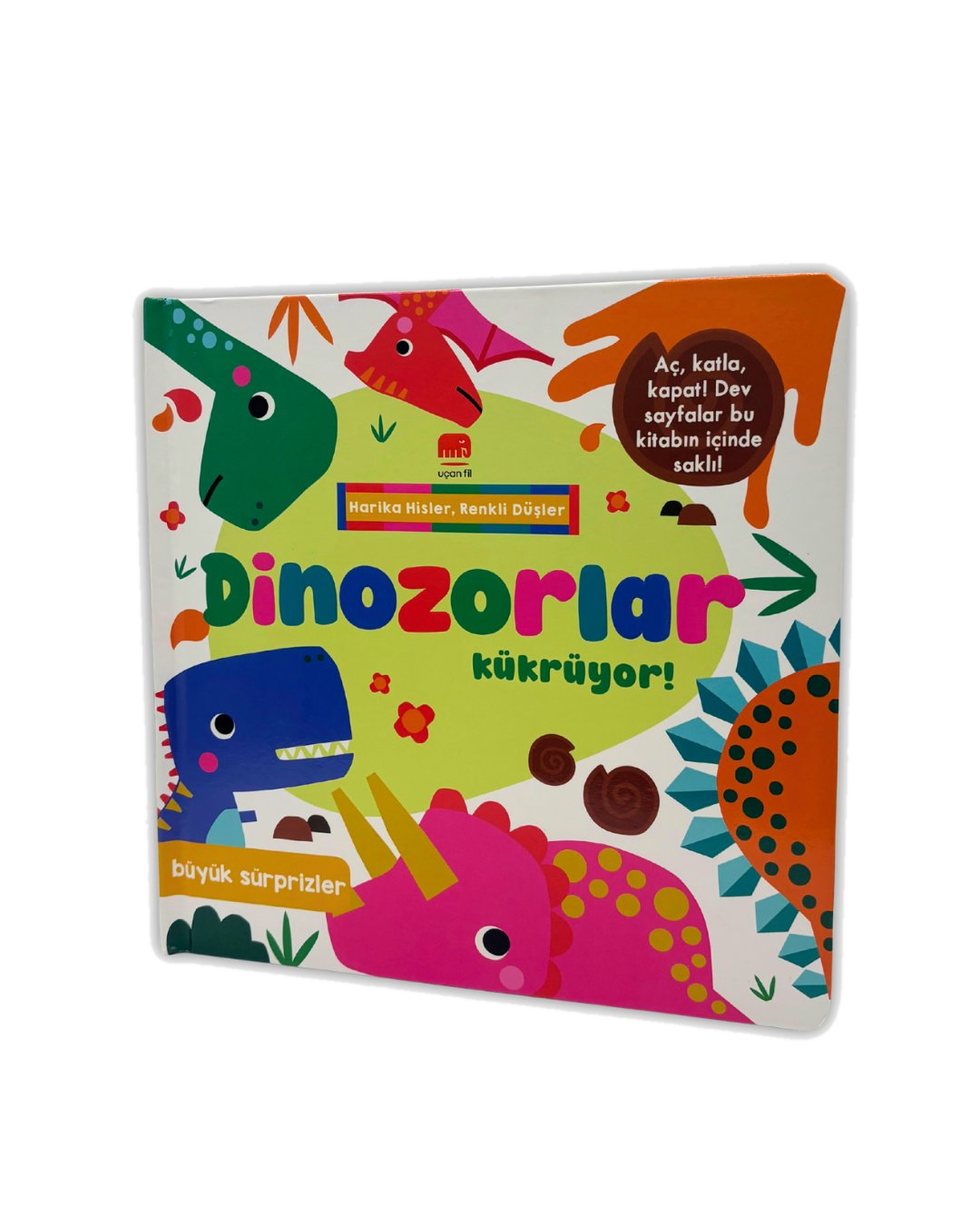 Devasa dinozorların dünyasına adım at! Açılır-katlanır sayfalarla çocuklar hem dinozorları yakından tanıyacak hem de keşfederek öğrenmenin keyfini yaşayacak.