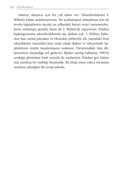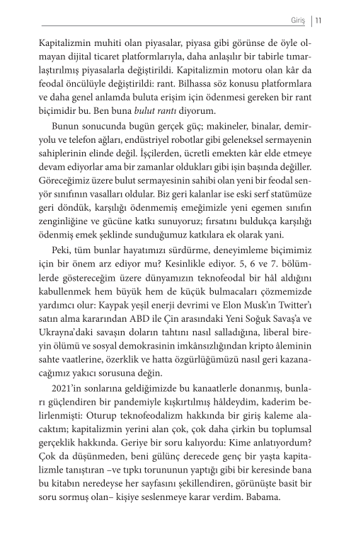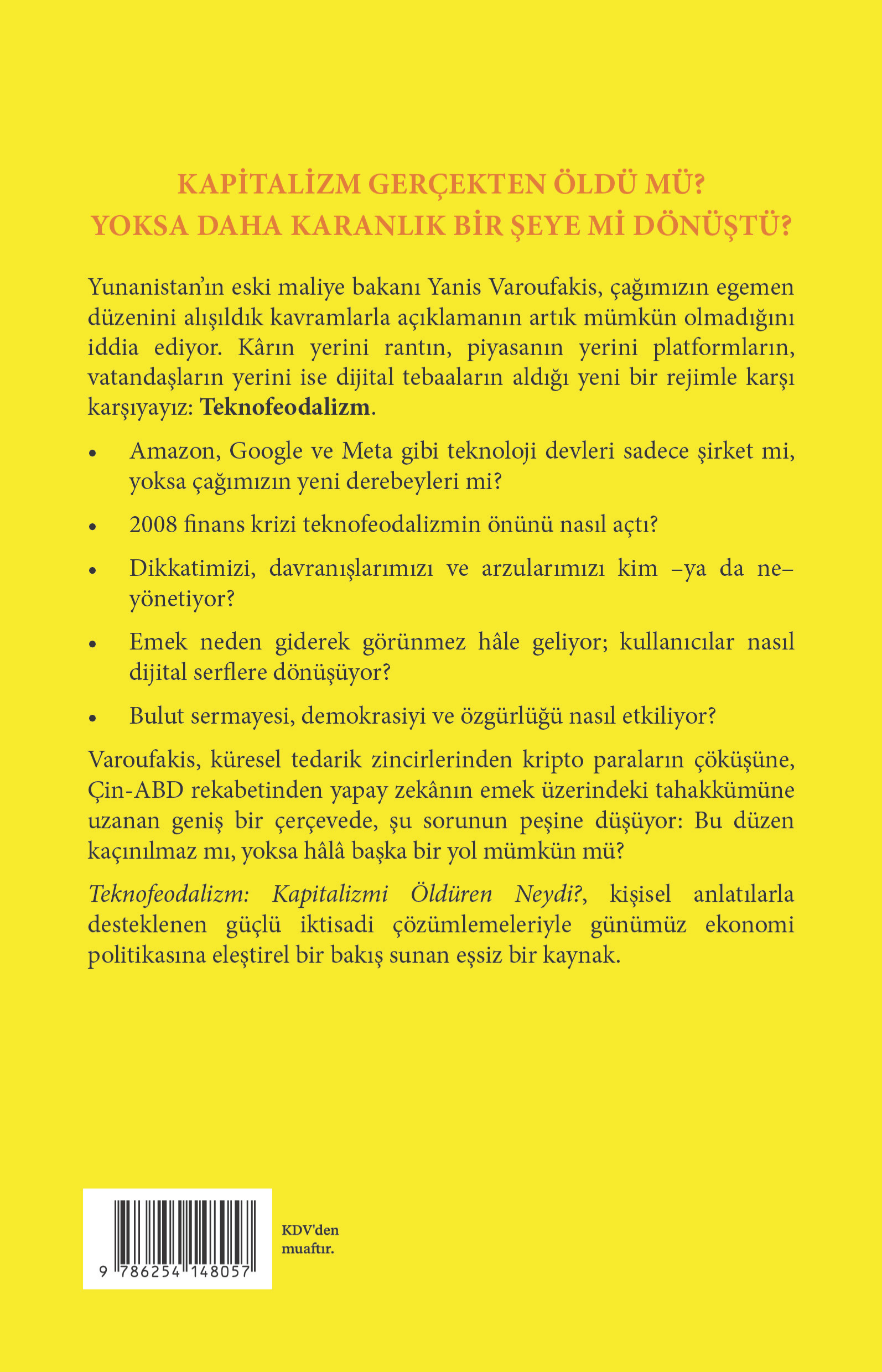 Teknofeodalizm: Kapitalizmi Öldüren Neydi?, kişisel anlatılarla desteklenen güçlü iktisadi çözümlemeleriyle günümüz ekonomi politikasına eleştirel bir bakış sunan eşsiz bir kaynak.