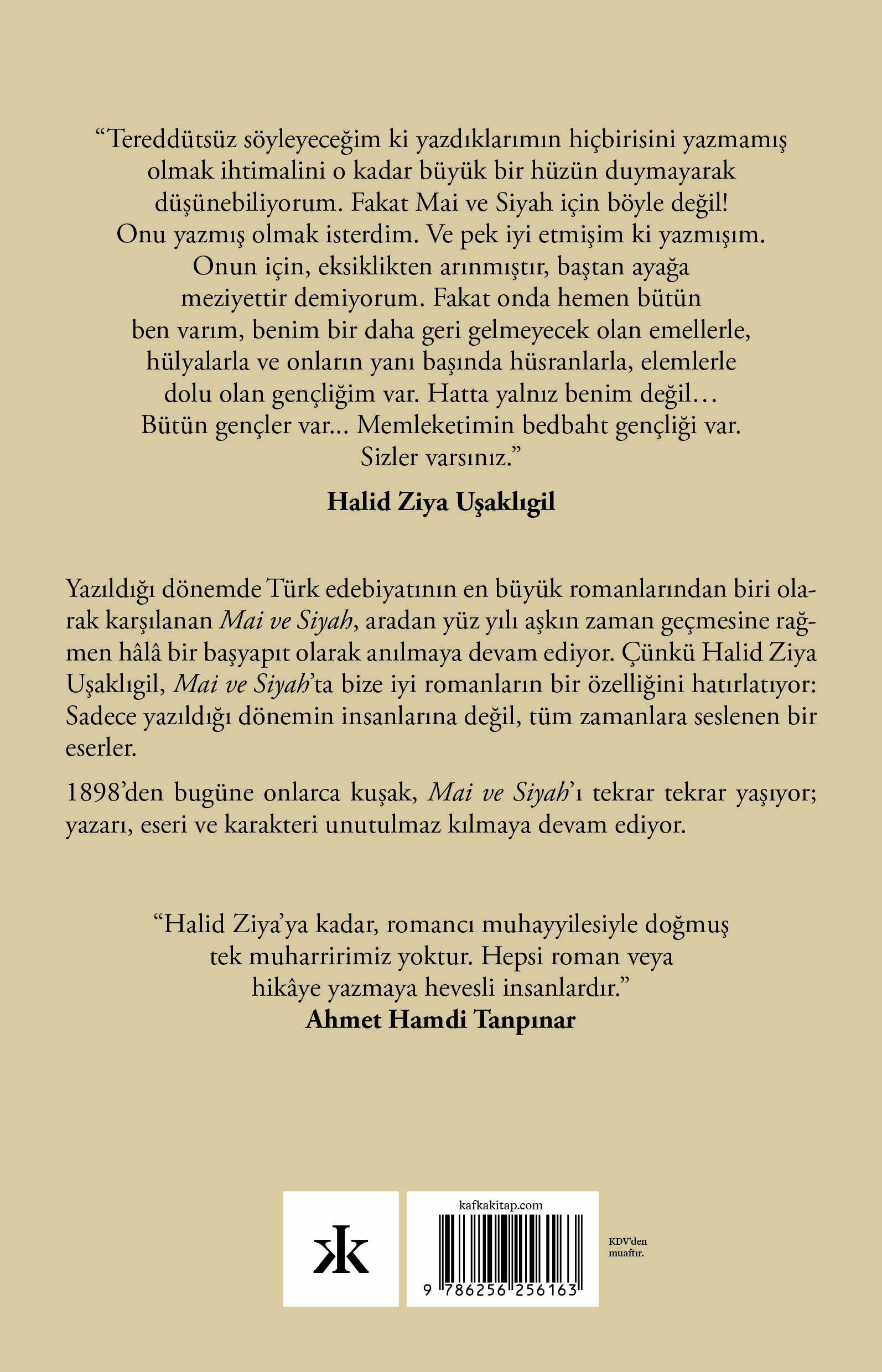 Yazıldığı dönemde Türk edebiyatının en büyük romanlarından biri olarak karşılanan Mai ve Siyah, aradan yüz yılı aşkın zaman geçmesine rağmen hâlâ bir başyapıt olarak anılmaya devam ediyor. Çünkü Halid Ziya Uşaklıgil, Mai ve Siyah’ta bize iyi romanların bir özelliğini hatırlatıyor: Sadece yazıldığı dönemin insanlarına değil, tüm zamanlara seslenen bir eserler.