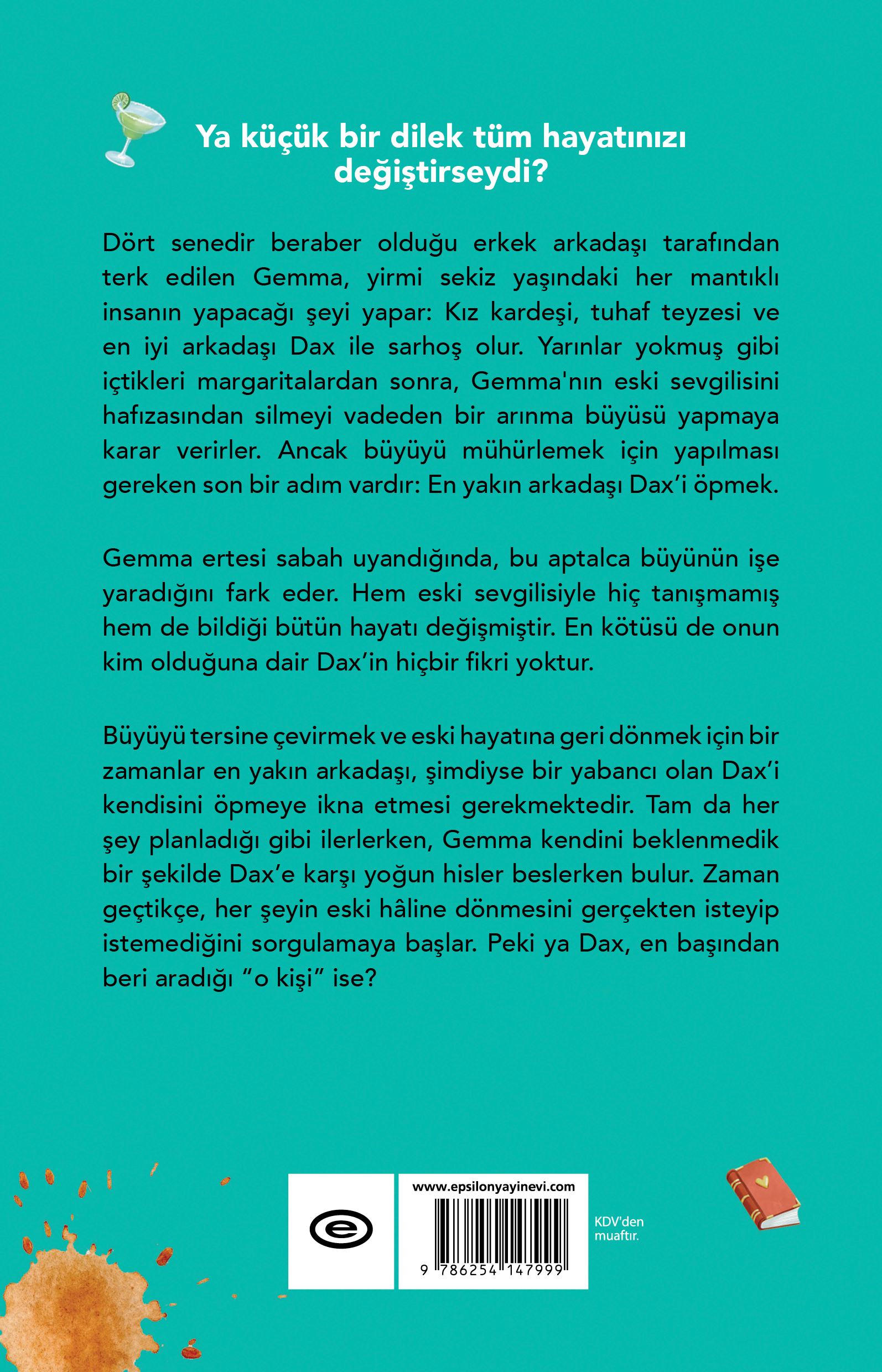 Dört senedir beraber olduğu erkek arkadaşı tarafından terk edilen Gemma, yirmi sekiz yaşındaki her mantıklı insanın yapacağı şeyi yapar: Kız kardeşi, tuhaf teyzesi ve en iyi arkadaşı Dax ile sarhoş olur. Yarınlar yokmuş gibi içtikleri margaritalardan sonra, Gemma'nın eski sevgilisini hafızasından silmeyi vadeden bir arınma büyüsü yapmaya karar verirler. Ancak büyüyü mühürlemek için yapılması gereken son bir adım vardır: En yakın arkadaşı Dax’i öpmek.