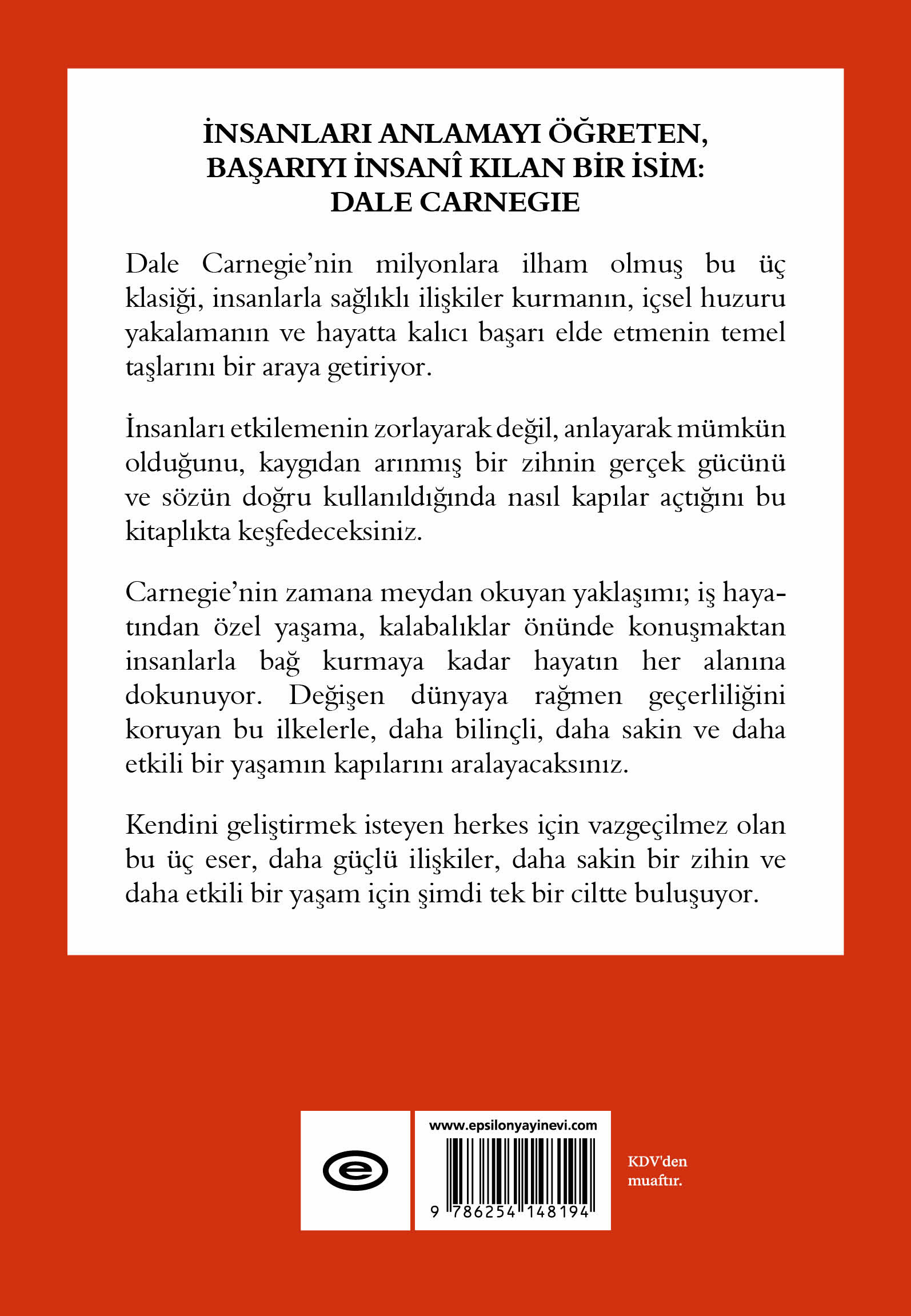 Dale Carnegie’nin milyonlara ilham olmuş bu üç klasiği, insanlarla sağlıklı ilişkiler kurmanın, içsel huzuru yakalamanın ve hayatta kalıcı başarı elde etmenin temel taşlarını bir araya getiriyor.