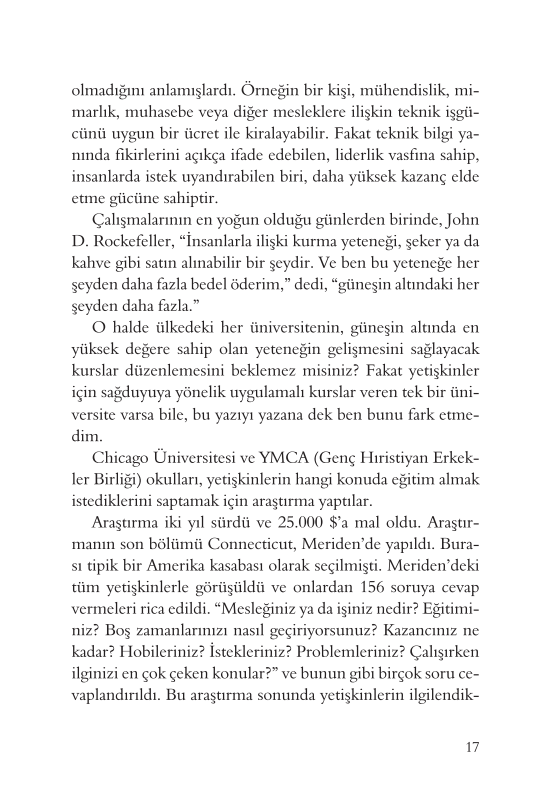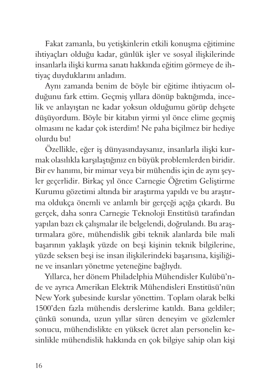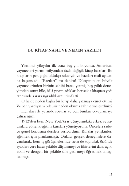 Carnegie’nin zamana meydan okuyan yaklaşımı; iş haya- tından özel yaşama, kalabalıklar önünde konuşmaktan insanlarla bağ kurmaya kadar hayatın her alanına dokunuyor. Değişen dünyaya rağmen geçerliliğini koruyan bu ilkelerle, daha bilinçli, daha sakin ve daha etkili bir yaşamın kapılarını aralayacaksınız.