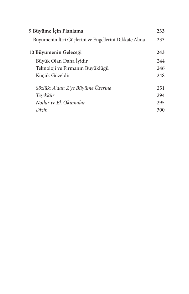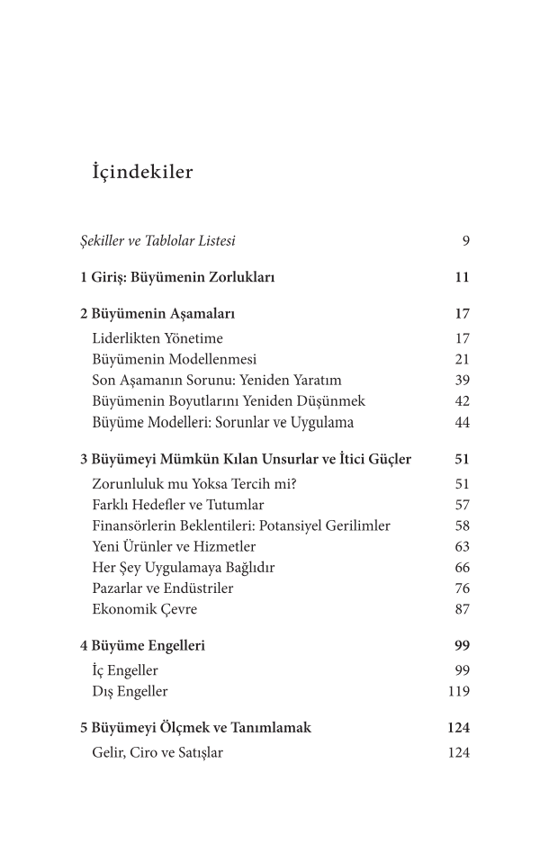 Yeni kurulan bir girişimin esneklik ile yapı arasındaki hassas dengeyi kurma sürecinden, büyük ölçekli şirketlerin farklı hızlarda gelişen bölümlerini uyumlu hâle getirmesine; vizyoner bir kurucunun kontrolü devretme gerekliliğiyle yüzleşmesinden, büyümenin getirdiği kültürel ve finansal dönüşümlere kadar iş dünyasındaki kritik sorular bu kitapta ele alınıyor.