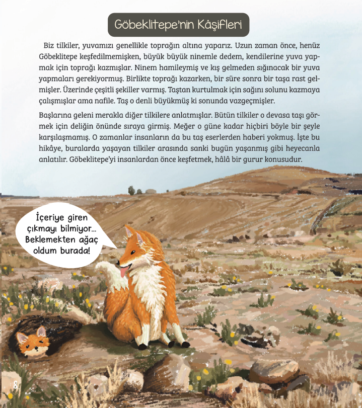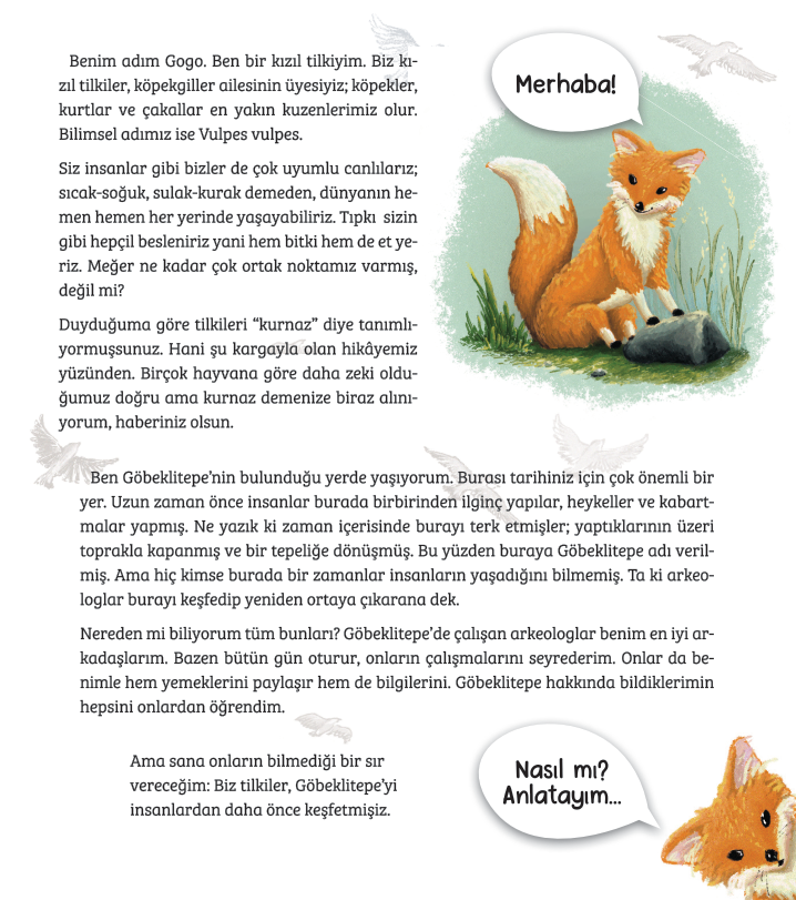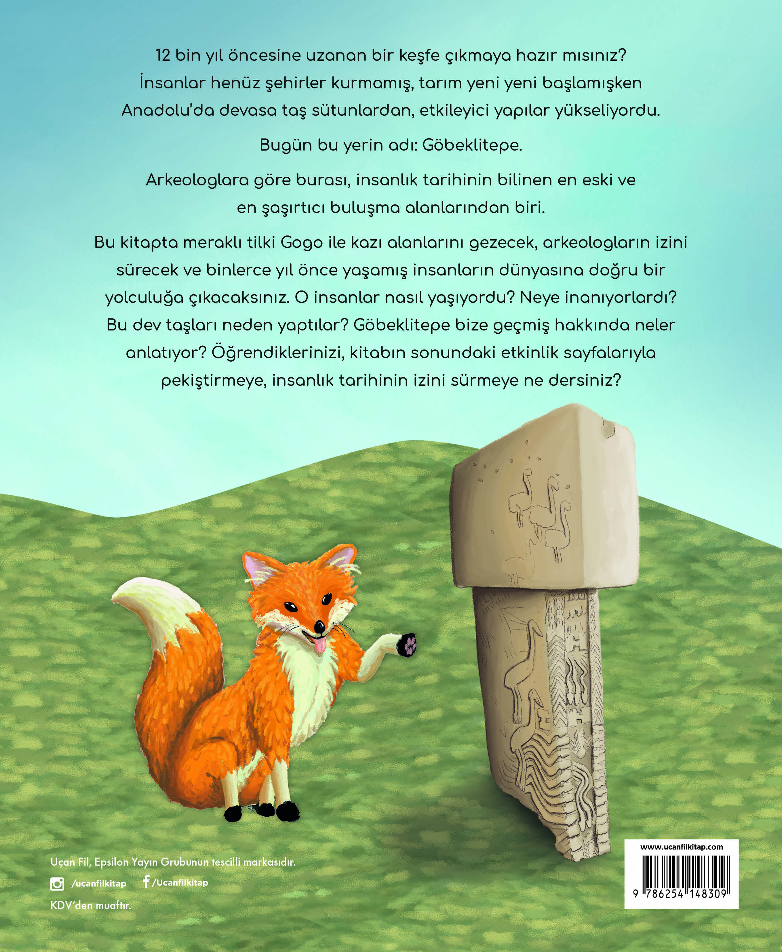 Bu kitapta meraklı tilki Gogo ile kazı alanlarını gezecek, arkeologların izini sürecek ve binlerce yıl önce yaşamış insanların dünyasına doğru bir yolculuğa çıkacaksınız. O insanlar nasıl yaşıyordu? Neye inanıyorlardı? Bu dev taşları neden yaptılar? Göbeklitepe bize geçmiş hakkında neler anlatıyor? Öğrendiklerinizi, kitabın sonundaki etkinlik sayfalarıyla pekiştirmeye, insanlık tarihinin izini sürmeye ne dersiniz?
