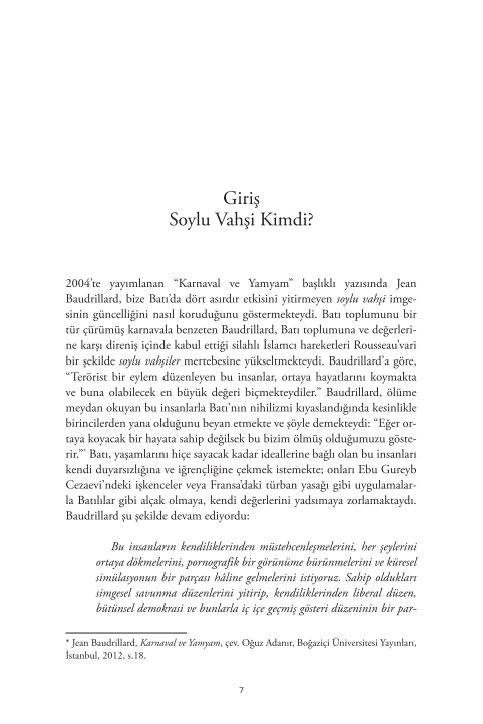 Töre Sivrioğlu, bu kitapta Mezopotamya’nın tozlu tabletlerinden başlayıp Yeni Dünya’nın balta girmemiş ormanlarına uzanan o büyüleyici efsanenin izini sürüyor; Gılgamış’ın yoldaşı Enkidu’dan Rousseau’nun mülkiyetsiz insanına, Magellan’ın devlerinden Montaigne’in yamyamlarına, geniş bir coğrafyada “öteki”nin nasıl kurgulandığını analiz ediyor.