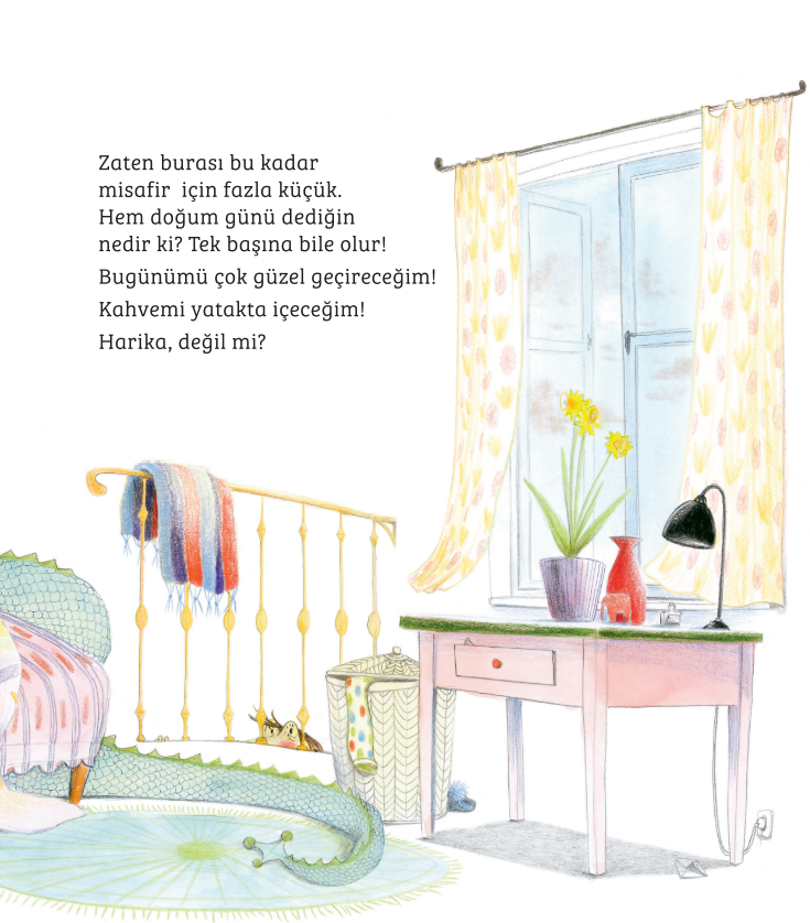 İyi ki Doğdun Ejderha, Fred’in gün boyunca rutinlerin arasına gizlenen telaşını ve yaklaşan kutlamaya dair büyüyen merakını incelikle izlerken, okurlarını da doğum günlerinin o tanıdık ama bir o kadar karmaşık duygularını yeniden hatırlamaya davet ediyor. Bu duygusal yolculuk, Julie Völk’ün masalsı ve zarif çizimleriyle derinleşiyor.